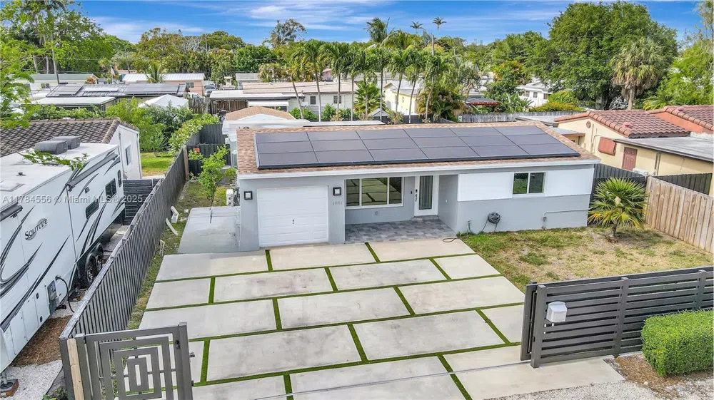 Completely renovated 3 bedroom + storage room & 2 bath pool home in Ft Lauderdale! Gated, remote control entrance w/ new driveway. Solar panels & Tesla power wall installed (2021), PAID OFF! Newer shingle & flat roof (2019). Heated pool & marble paver deck built (2019) & built in grill. City sewer connection. Impact glass windows & door installed (2019). Stunning kitchen, baths & flooring. New appliances. Gas - pool heater, dryer, stove, water heater, fireplace & BBQ grill! No HOA. Fantastic location - walking distance to Snyder Park & Floyd Hull Stadium. Minutes to FLL Airport, I95, 595, US1 & Ft Lauderdale Beach!