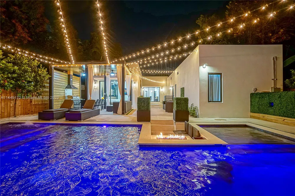 This brand new home is a masterpiece of modern design, boasting exquisite finishes and luxurious features. Step inside and be captivated by the stunning black kitchen, where sleek cabinetry and top-of-the-line appliances create a stylish and functional space. You'll be greeted by the warm and inviting ambiance created by the beautiful wood floors and open living space. Step into your own private oasis and take a dip in the sparkling pool, complete with a rejuvenating jacuzzi, where you can unwind after a long day. This home features impact windows and doors, ensuring not only security but also energy efficiency and noise reduction. The master bath is a true oasis, featuring a rain shower and a luxurious tub and shower combination. Indulge in a spa-like experience. Total 2494 Sqft under A/C