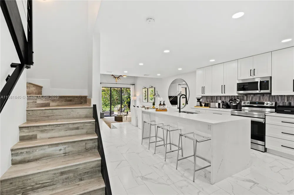 In the midst of a hidden tropical oasis on the Middle River, you will find a beautifully renovated, contemporary townhome. This unique property featuring stunning 24 feet vaulted ceilings consists of 2 bedrooms, 2.5 bathrooms, multiple outdoor patios, balcony, huge living area, two personal parking spots and peaceful, private views of the Middle River. Steps away from restaurants and night life of Wilton Manors and only 2 miles from the Beaches, Downtown & the shops on Las Olas Blvd.